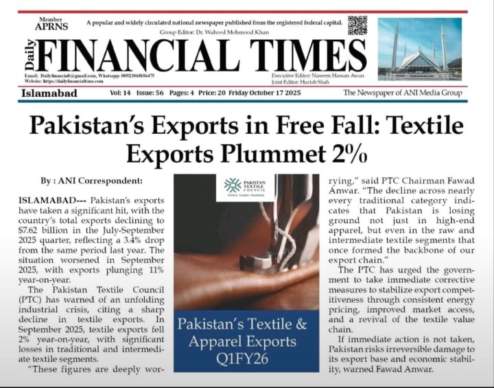 Pakistan’s Export in Free Fall: Textile Exports Plummet 2%